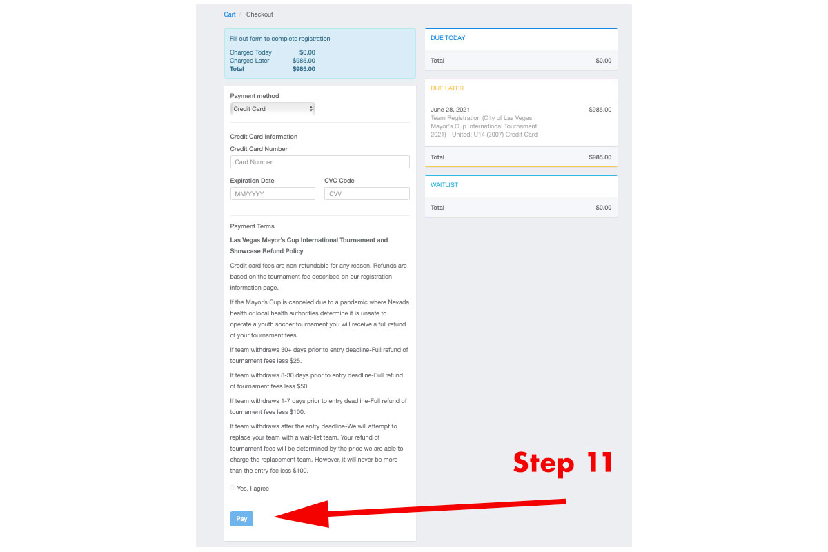 The tournament will now be in your “Cart”, you can complete the registration by clicking Checkout.
