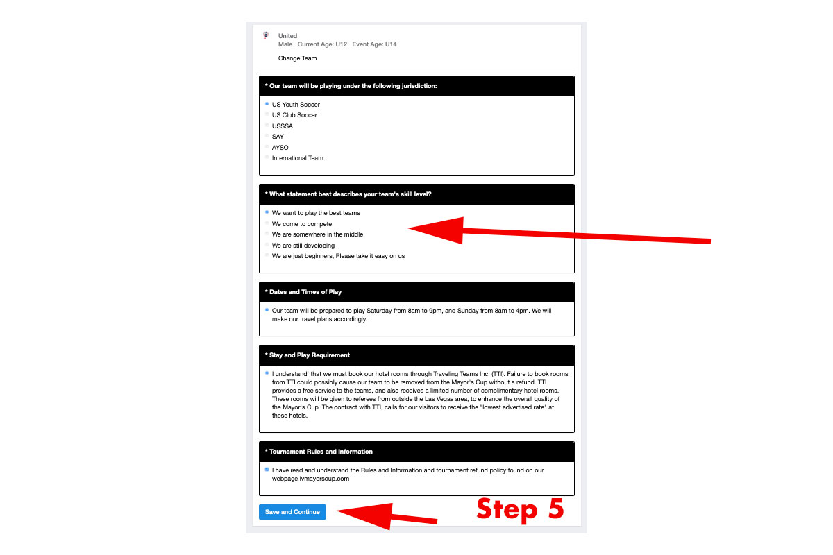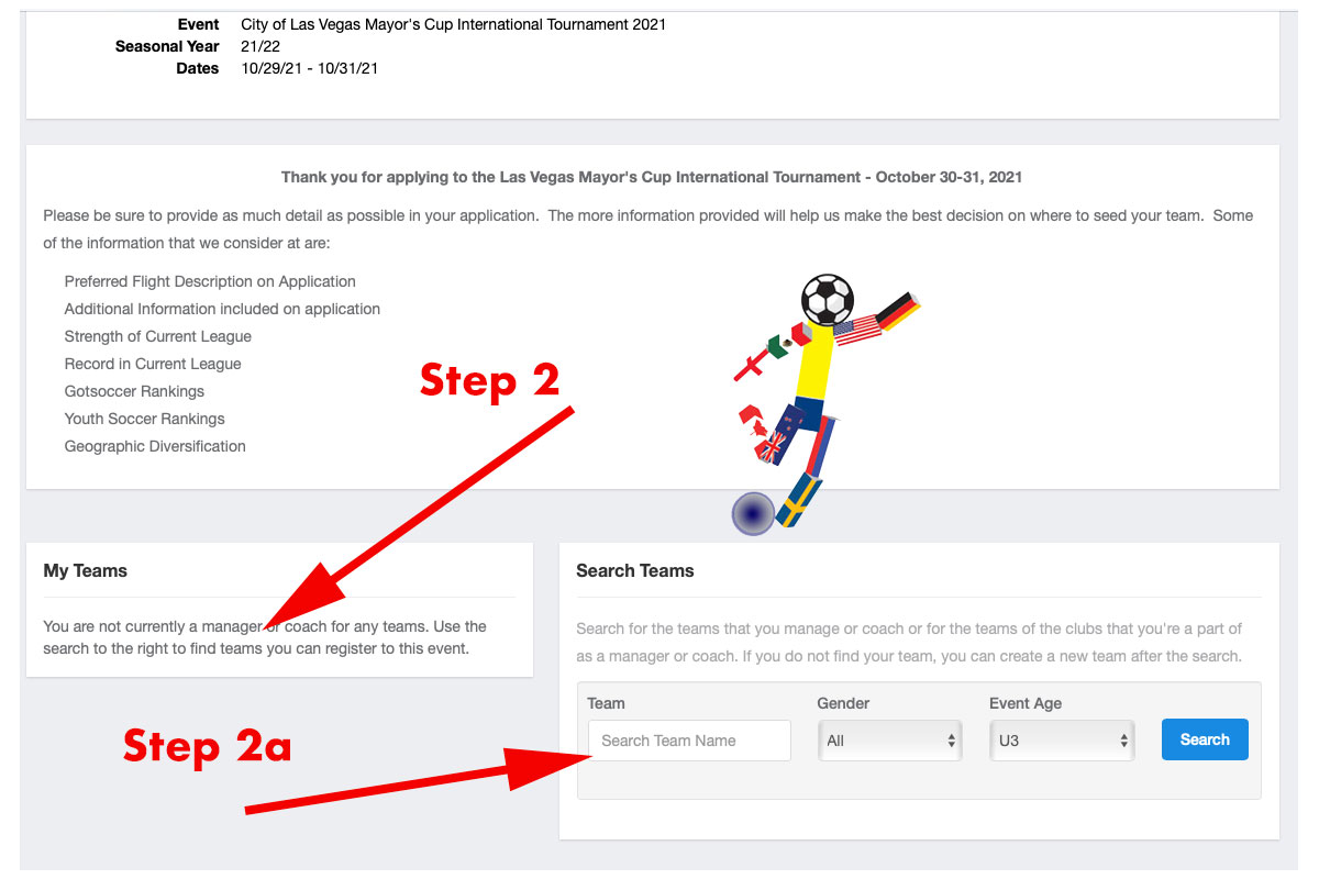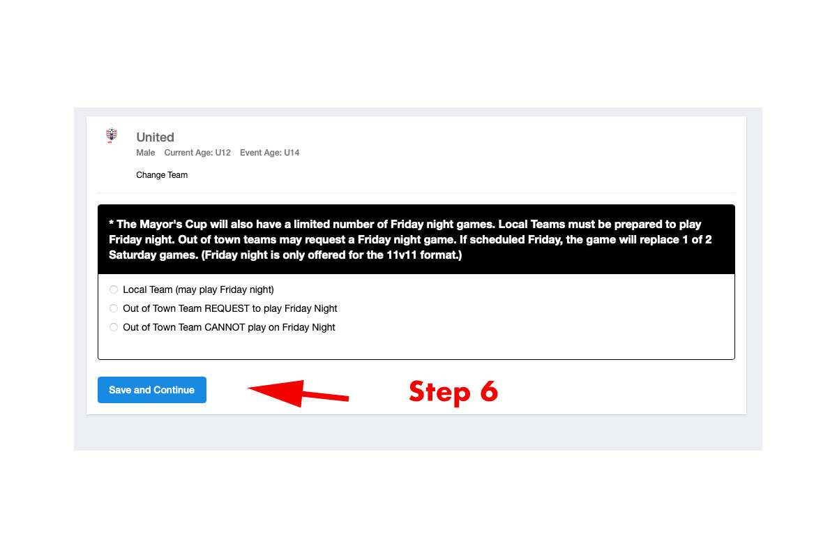 IMPORTAnt: the event age you select will be the age group you are registering to play in. So if you are a younter team wanting to “play up”, list the age group you wish to play in.
