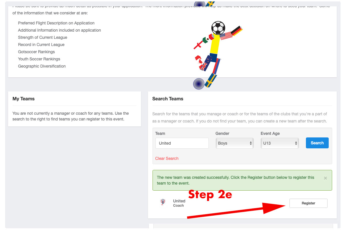 If you already signed up with Gotsport and have a team to register, you can select REGISTER as step 2