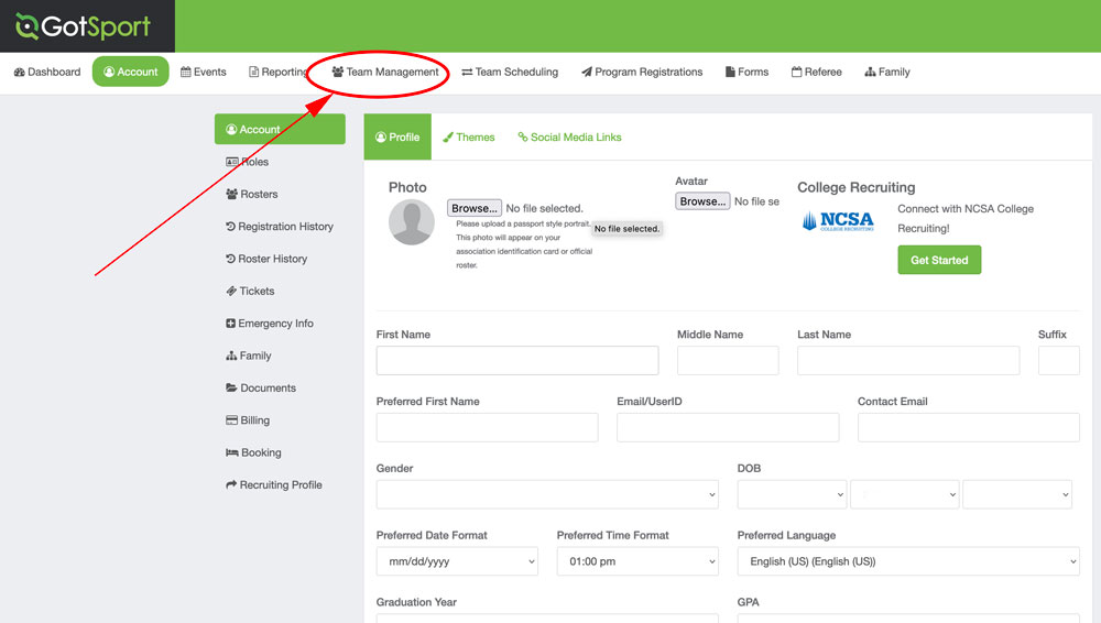 Select the team that you would like to add the guest player to.