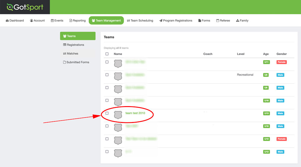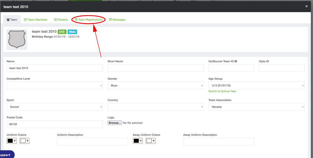 Select Team Registrations