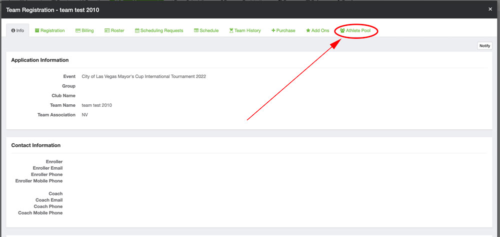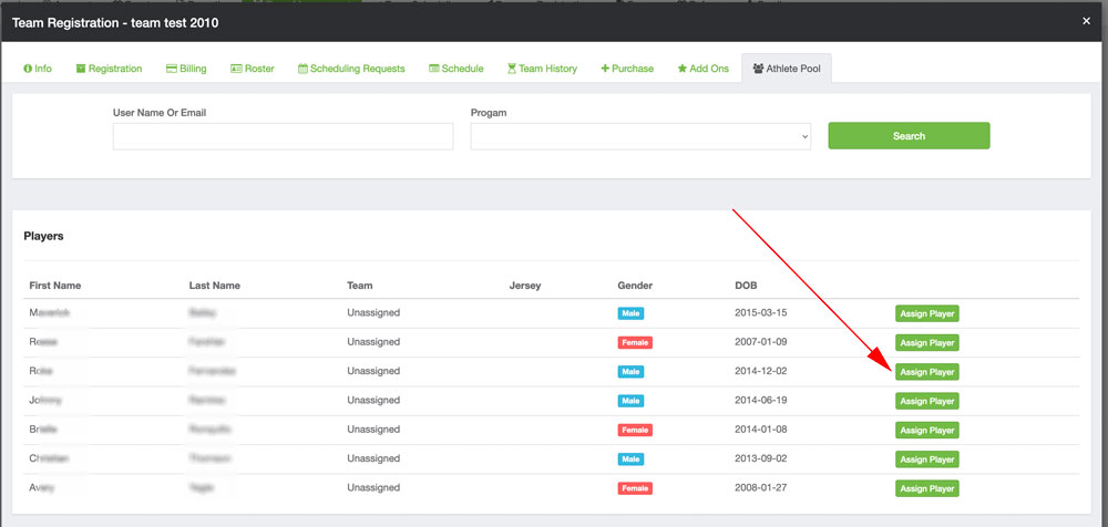 Select Athlete Pool. This will bring up the list of guest players.